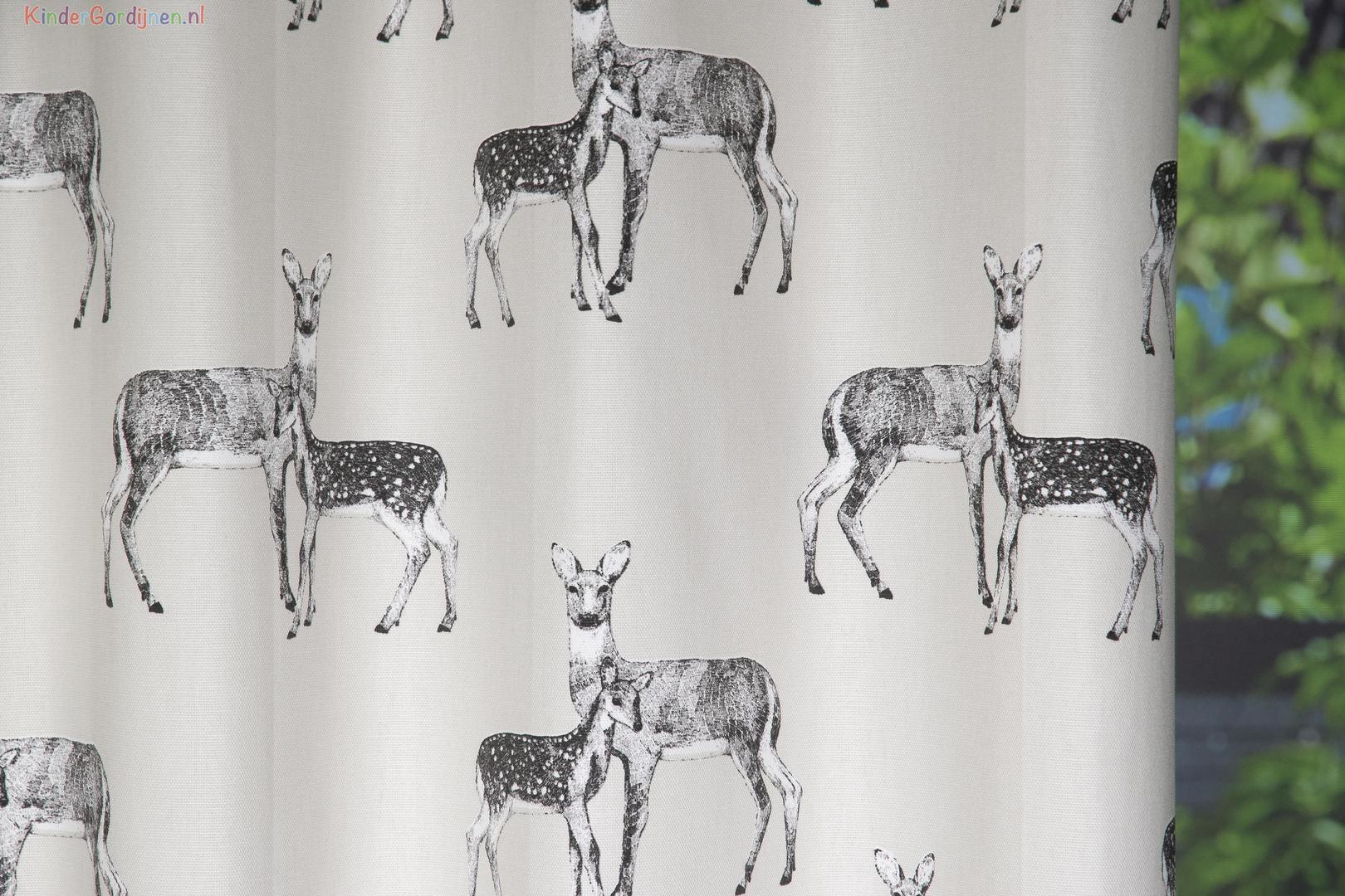 Een hertjes gordijn! Verkrijgbaar in twee prachtige kleuren, kastanjebruin en canvasgrijs,