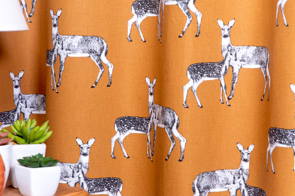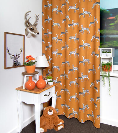 De Combi Animal, deze collectie bestaat uit een prachtige oranje en grijze gordijnstof met schattige vossen die speels door de stof lijken te dartelen. Daarnaast hebben we een kastanje kleurige stof met prachtige hertjes die elegant het landschap sieren. En laten we de oker gele stof niet vergeten, versierd met adembenemende egeltjes die je hart doen smelten.