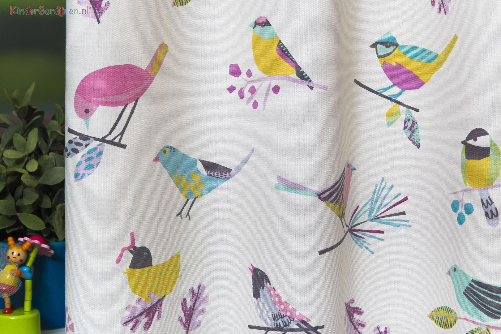 “Tweet tweet” begin de dag met een lach, lijken deze vogeltjes te zeggen. Een super vrolijk gordijn, met vrolijke kleuren op een frisse, matte ondergrond. De ‘vogeltjes’ zijn 10 x 15 cm en gedrukt op matte katoenen stof. Deze vogeltjesstof is uitstekend te combineren met bloemen behang of een uitgesproken accentkleur op de muur. Ga jij dan voor romantisch roze en lilla, of past de naturelkleurige beter bij jou? Er kan van alles, jij mag kiezen! Voor verduistering even laten voeren.