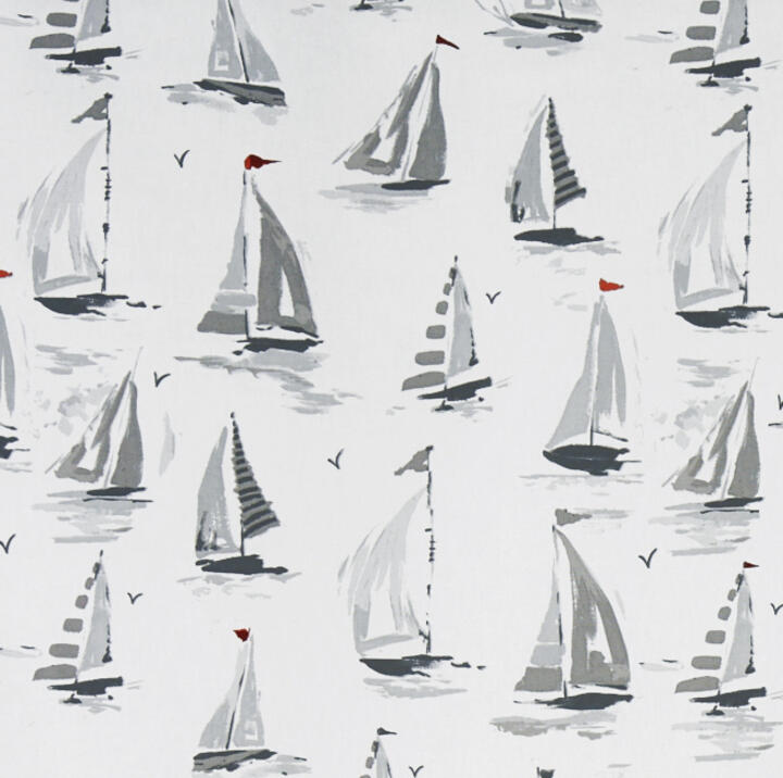 Een fraai maritiem gordijn, leverbaar in 3 kleuren. De lekker robuust geweven stof is warm wit van kleur en aan de voorzijde bedrukt met schilderachtige zeilbootjes. De blauwe en grijze variant heeft diep steenrood als accentkleur. De zeilbootjes zijn +/- 15 cm groot. Het is natuurlijk super leuk om dit thema met accessoires uit te breiden en evt. een accent blauwe of groene wand. De kwalitatief hoogwaardige stof valt soepel en kan desgewenst nog gevoerd worden. Zie jij de nieuwe kamer al voor je?