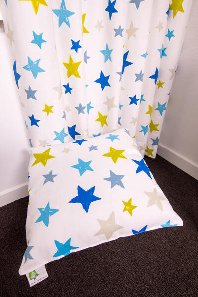 Deze sterren gordijnen zijn ideaal omdat ze kleurrijk én tijdloos zijn. Ook leverbaar in 5 verschillende kleurpaletten, waardoor zij voor zowel jongens- als meisjeskamer geschikt zijn. Jong & oud zou toch graag eens onder een sterrenhemel slapen? Daarom is het zo leuk om dit thema uit te breiden. De gordijnstof kan ook als vouwgordijn gemaakt worden en naar wens gevoerd. Welterusten sterretjes!