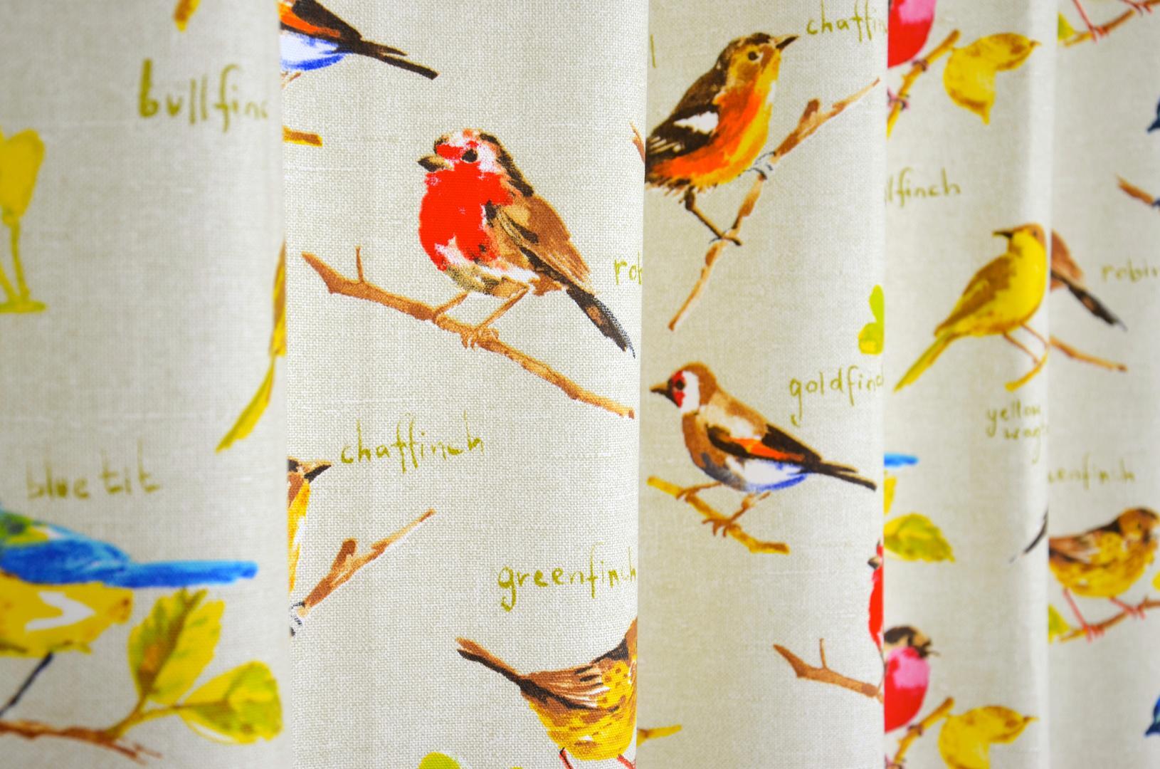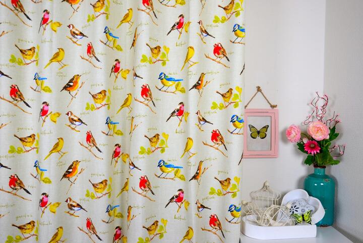 Zangvogeltjes op een gordijn voor je raam, hoe vrolijk is dat? Verschillende soorten zingen hun mooiste lied en jij mag kiezen: de roomwitte ondergrond of de sportieve linnenkleur? Ook de zwart-witte variant is aantrekkelijk doordat de vorm fraai uitkomt. Het effect is dan tijdloos, zoals bij zwart-wit fotografie. De afbeeldingen zijn gedrukt op matte, vlotte katoen en zo’n 12 x 8 cm groot. Desgewenst verduisterend te voeren.