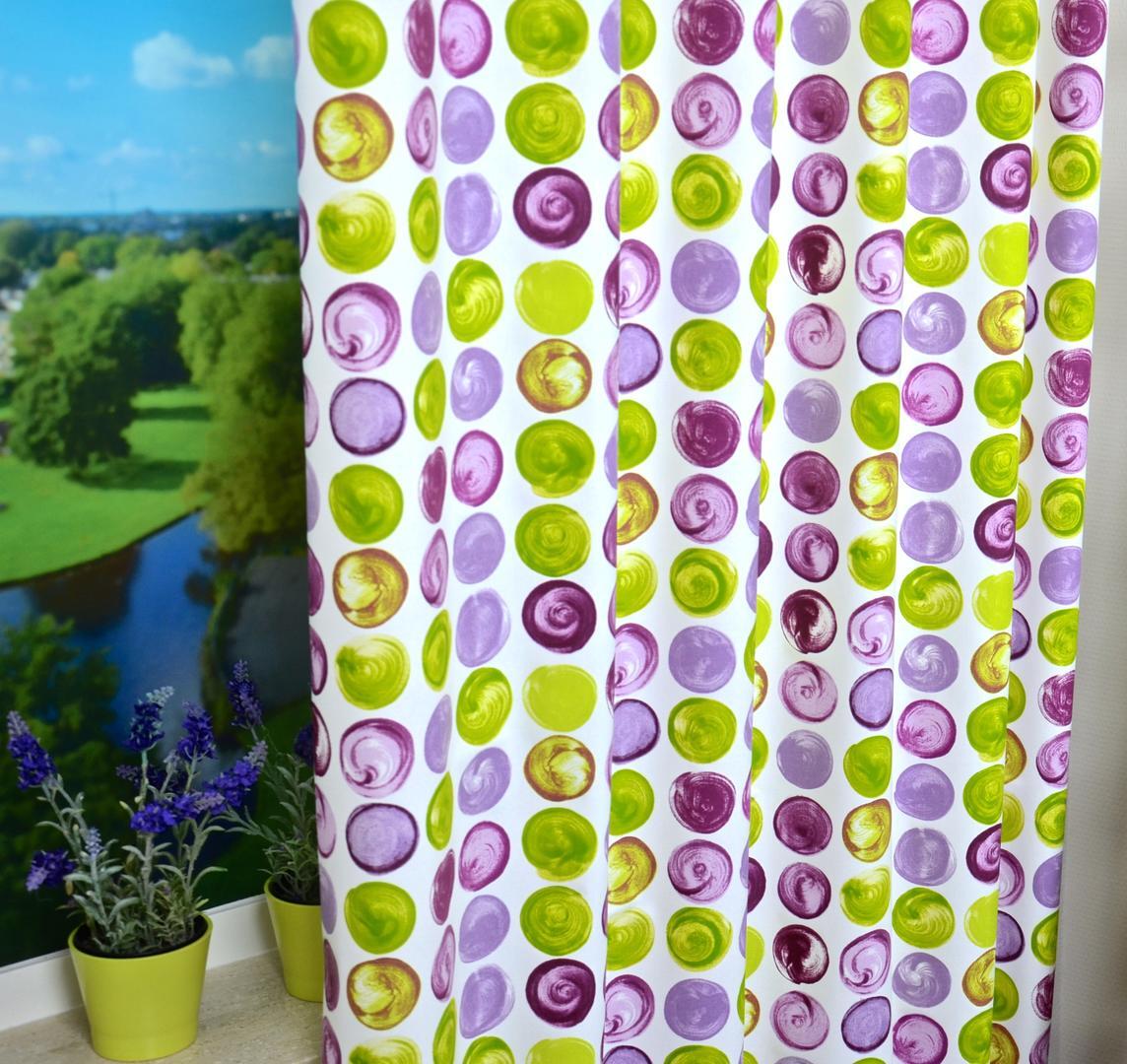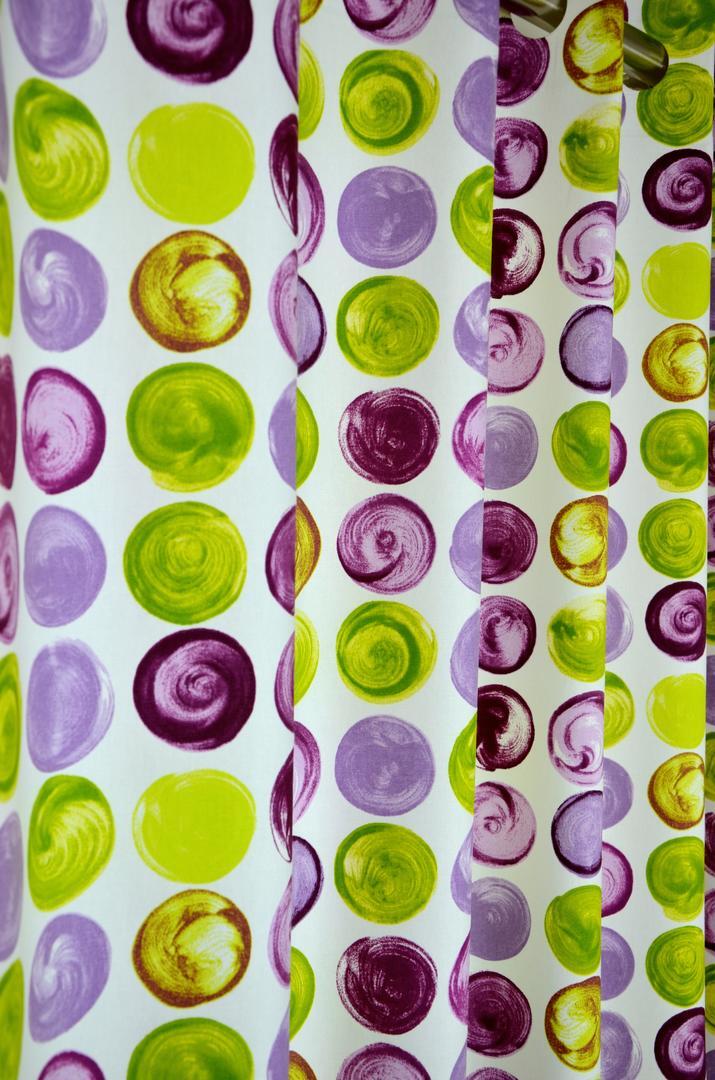 Vrolijke verfstippen op een warm witte ondergrond. Is het abstracte kunst of juist het schilderspalet? Beide stralen zonneschijn en creativiteit uit. De cirkels zijn 6 cm in doorsnede en het gordijn is leverbaar in 4 heldere kleurcombinaties. De stof is dicht geweven, voor verduistering evt. extra laten voeren. Alle kleurcombinaties zijn sprankelend en nodigen uit tot expressie.
