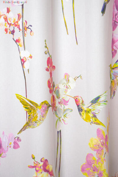 Deze gordijnstof met de naam Humming Bird is gemaakt van de beste materialen waardoor het gordijn mooi in de plooi valt.