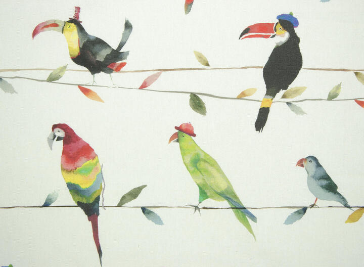 Deze gordijnstof met de naam Toucan Talk is gemaakt van de beste materialen waardoor het gordijn mooi in de plooi valt.