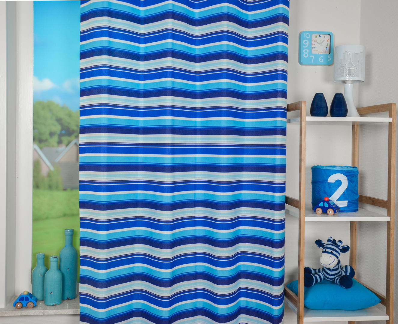 Strepen zijn STYLISH! Makkelijk te combineren met andere patronen en afbeeldingen. Ook geeft een streep een hoogte en/of breedte effect, waardoor de kamer wat ruimtelijker lijkt. Dit gordijn is leverbaar in 2 verschillende kleurcombinaties en allemaal voorradig! Snelle levering is daardoor gegarandeerd. Het patroon is gedrukt op licht geribde, matte stof, wat een vlotte uitstraling geeft en kan zowel horizontaal als verticaal worden toegepast. De strepen zijn wisselend van breedte. (max.5cm) voor kleurbehoud of een donker makend effect graag even voeren.