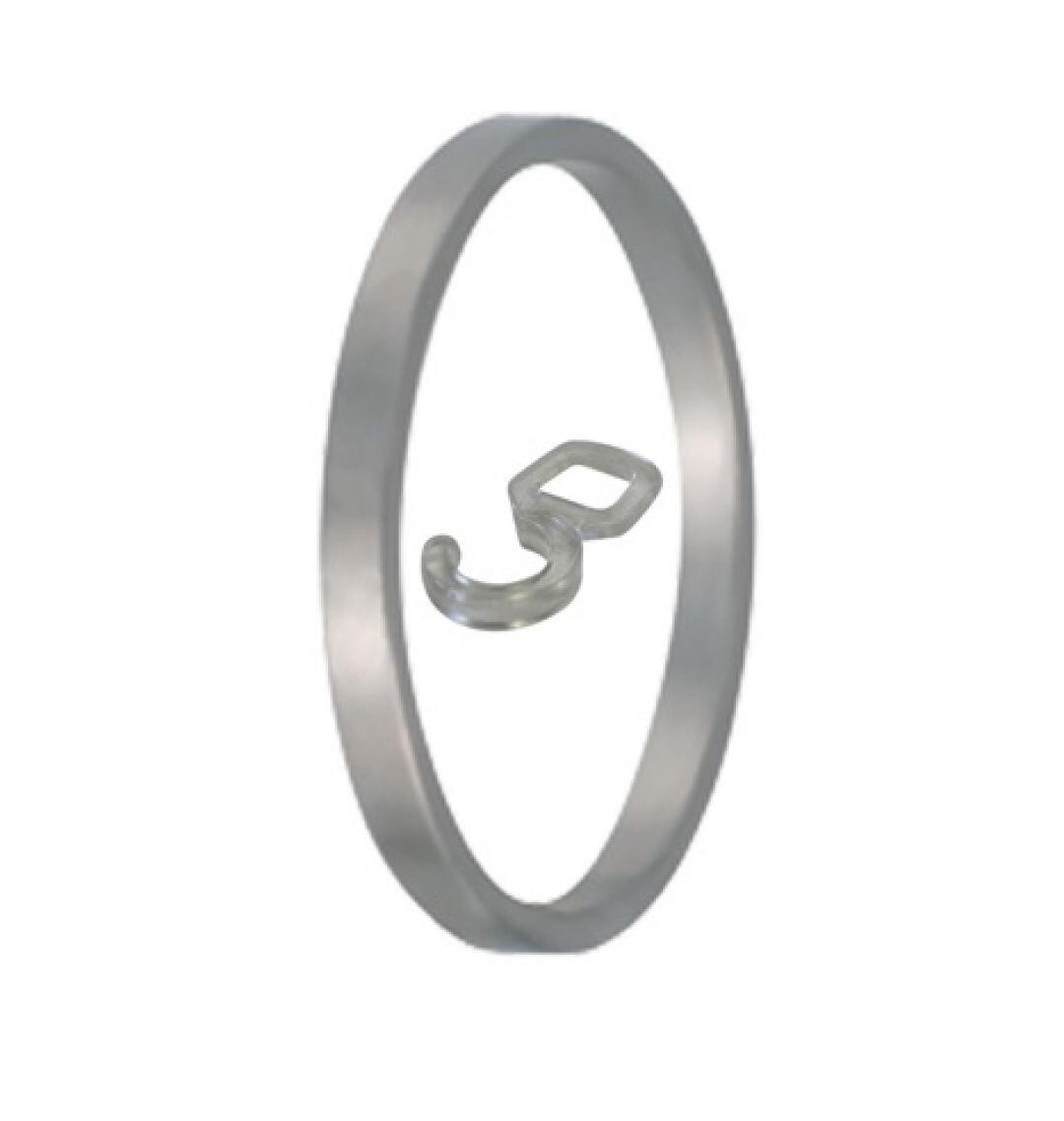 Rvs voedering met oogje te gebruiken om een gordijn met gordijnhaken toch aan een roede te kunnen hangen.