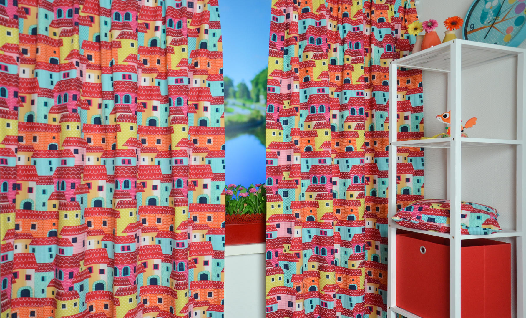 Dit gordijn is geïnspireerd op de pittoreske geveltjes in Italië. De authentieke straatjes, de dakpannen gloeiend in de zon, een sfeertje dat je graag mee naar huis wilt nemen. Dat kanÂ….. met dit gordijn! Leverbaar in 2 verschillende kleurstellingen en gedrukt op gladde katoen. De nostalgische pandjes zijn zo’n 12 cm groot. Loop je mee door de nauwe steegjes? Voor extra kleurbehoud of verduistering graag even voeren.