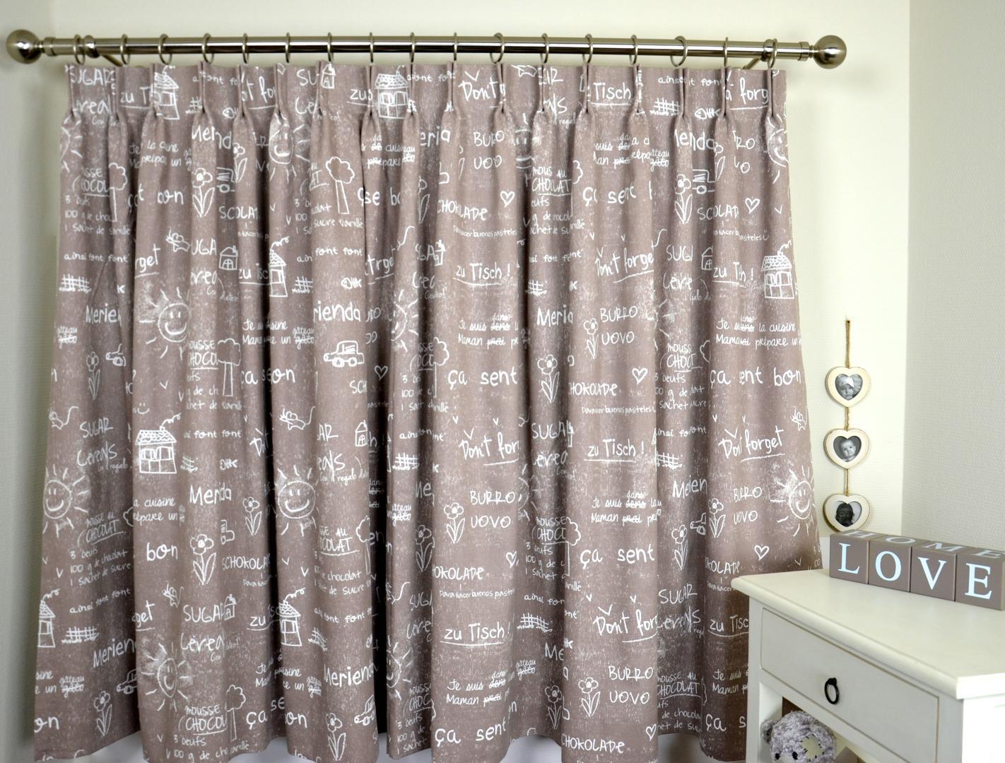 Dit gordijn lijkt op een schoolbord en is dus alleen geschikt voor kinderen die van leren houden! Moeten ze hun Frans of Duits nog een beetje bijspijkeren? Hang dan deze gordijnen op in de kinderkamer.