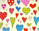 Kleurrijk hartjesgordijn met afwisselende motieven van strepen en stippen. Het Amor gordijn is beschikbaar in twee verschillende uitvoeringen en fleurt de meisjeskamer direct op.