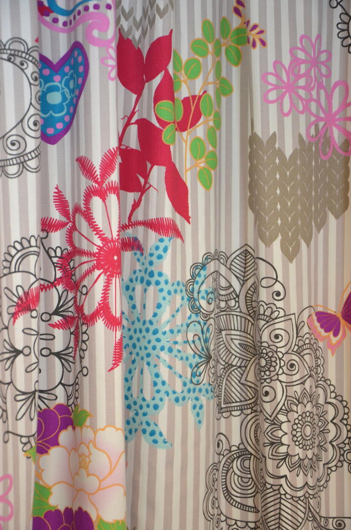 Kleurrijk gordijn met een bont bloemenmotief voor de meisjeskamer. De unieke bedrukte gordijnstof is samengesteld uit polyester en katoen en voelt daardoor heerlijk zacht aan.