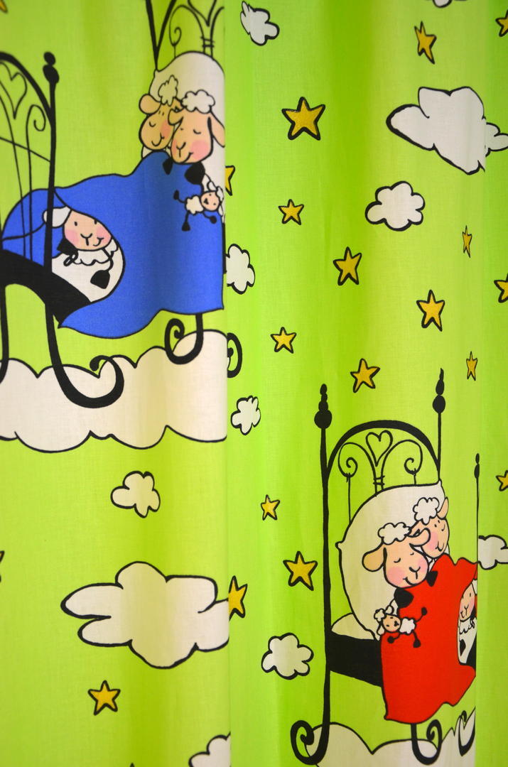 1,2,3,4,5...97, 98 ....ZzzZzzZzz Schaapjes tellen om in slaap te vallen, wie heeft niet ooit die tip gekregen. Met dit vrolijke groene gordijn met schaapjes onder rode of blauwe dekentjes, zwevend op de wolken door de sterrennacht hoeft uw kind zich geen moment te vervelen. Er valt genoeg te tellen, de sterren, de manen of de schaapjes zelf. Deze stof bestaat uit 100% katoen en kan naar wens ook verduisterend worden geleverd.