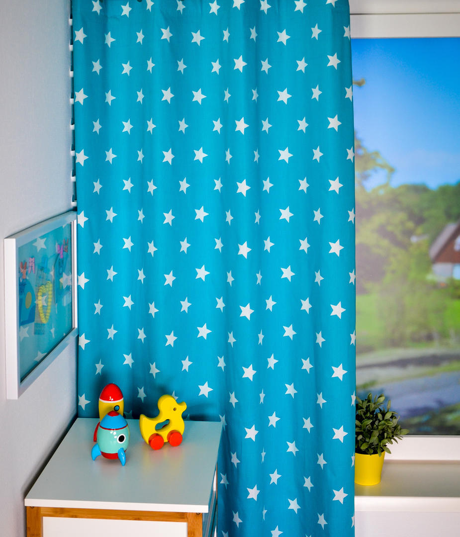 Prachtige tijdloze gordijnen met een effen kleur en bomvol fonkelde sterren. De gordijnstof is verkrijgbaar in 7 mooie diepe kleuren en past in elke kinderkamer. Zowel voor jongens als meisjes!
