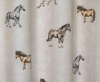 Het paardengordijn Stables! Op de ecru stof pronken verschillende paarden, sommige in galop en anderen in draf. De dikke maar soepele katoenen stof garandeert jarenlang plezier en duurzaamheid.
