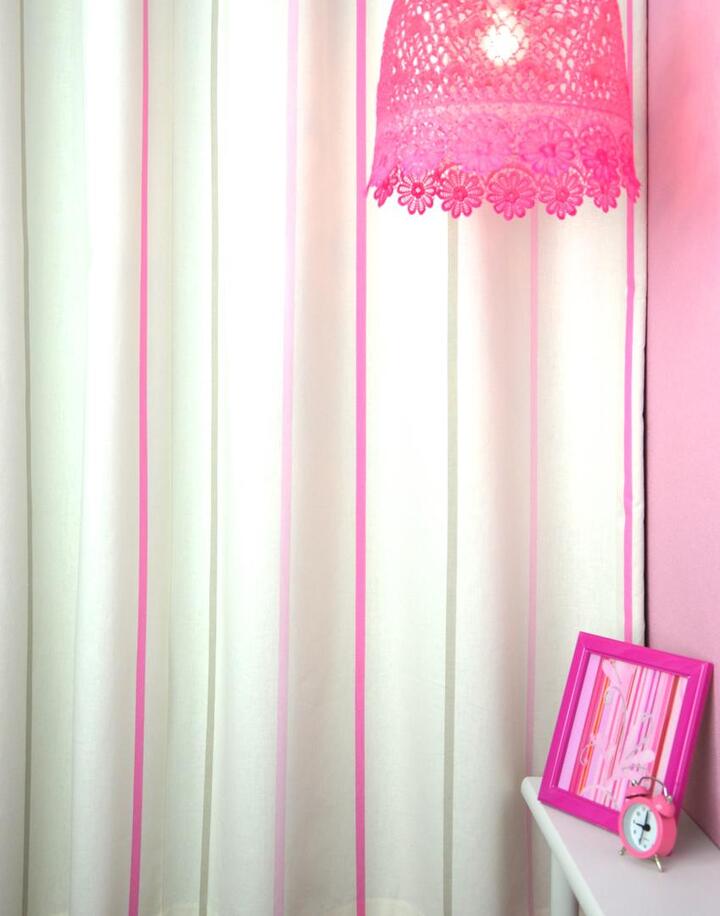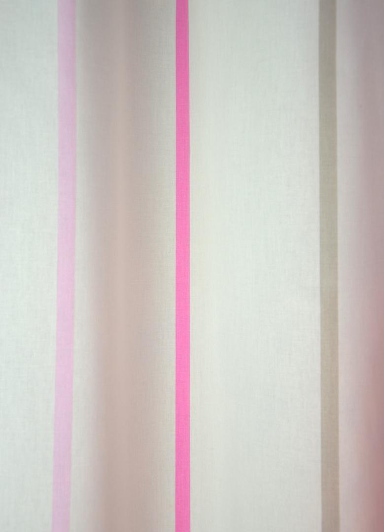 Overgordijn met een fris gekleurde lengtestreep over de volle breedte van de stof. Vanwege de lichte kleur adviseren wij u om dit gordijn te laten voeren. Deze optie kunt u aanvinken tijdens het bestelproces.