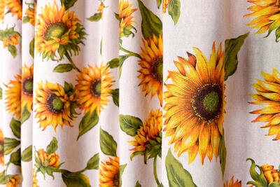 Zon, zomer, zonnebloem! Precies dat is wat dit gordijn brengt: gevoel van een warme, gezellige zomer. Wie wil die beleving nu niet? De zonnebloemen zijn gedrukt op linnenlook stof, dat geeft een warme,landelijke uitstraling. De bloemen zijn 15 cm in doorsnede. Het gordijn is kamerhoog, waardoor je voor dezelfde prijs de gordijnen tot de grond gemaakt hebt. Dat maakt de keuze wellicht nog makkelijker?