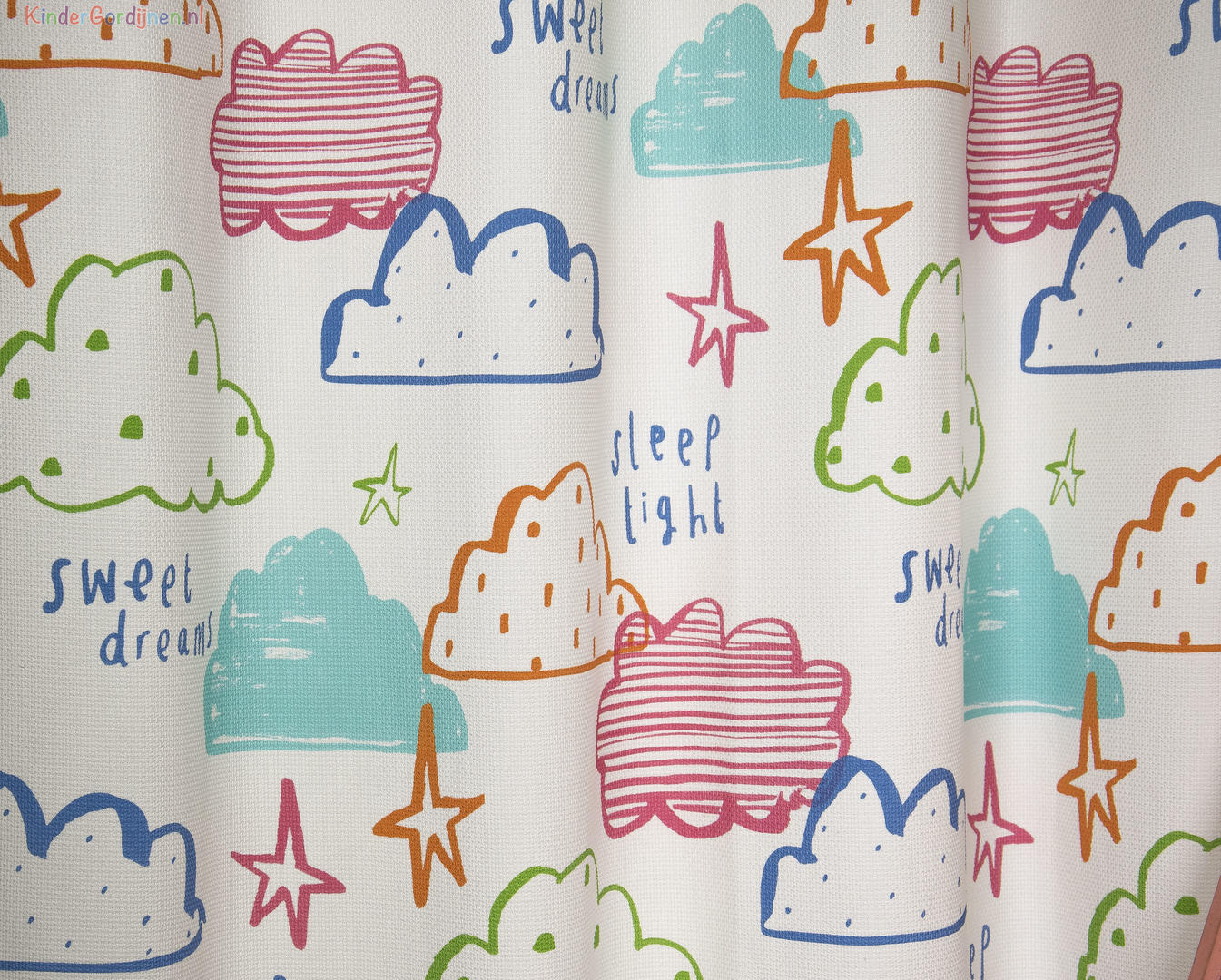 Uniek aan dit gordijn is dat het deels gemaakt is van gerecycled polyester, afkomstig van petflessen, waardoor het bijdraagt aan duurzaamheid. Ook is de wolkenprint met een waterbesparende techniek aangebracht. Kortom, het kindergordijn Sweet Dreams combineert stijl met milieubewustzijn. Wil je de isolatie nog verder verbeteren, dan kun je tijdens het bestelproces een extra voering toevoegen voor verduistering en extra isolatie tegen warmte, kou en geluid. Daarnaast bieden wij knipstaal/samples van de stof, zodat je de kleur en kwaliteit zelf kunt beoordelen voordat je bestelt. Bestel je deze vandaag, dan heb je ze meestal morgen al in huis. Mocht je vragen hebben, sta ik altijd klaar om je te helpen!