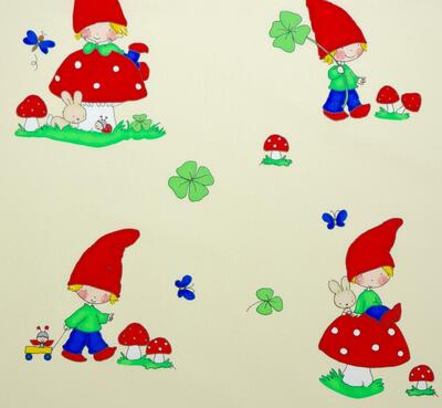 Op een grote paddestoel, rood met witte stippen... zat Kabouter Spillebeen heen en weer te wippen. Wie kent dit kinderliedje niet. Als je naar dit kindergordijn kijkt dan is dat het eerste liedje dat gelijk in je hoofd opkomt. Op het kindergordijn staan verschillende kabouters met paddenstoelen afgebeeld. Het materiaal dat voor dit kindergordijn is gebruikt is 100% katoen. Hierdoor valt het soepel en voelt het ook nog eens heel zacht aan. Om het helemaal af te maken kun je het beter laten voeren met verduisteringsgordijn zodat als je de gordijnen sluit het echt donker is in de kamer. â € Om een beter idee te krijgen van het kindergordijn kun je ook een knipstaal bestellen. Hierdoor krijg je een stukje gordijn thuisgestuurd en kun je het zelf zien en voelen. â €