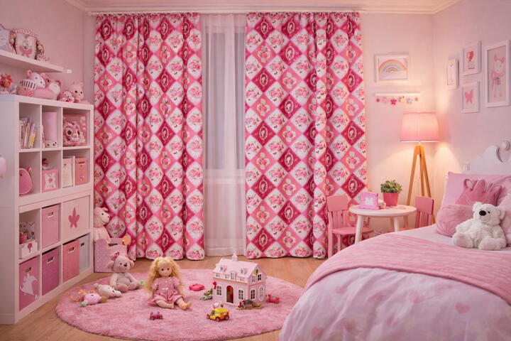 Roze Carreau – zacht, dromerig en romantisch. Ideaal voor een lieve meisjeskamer met een warme uitstraling.