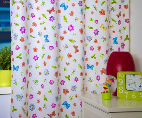 Met bloem- en bladmotieven zijn oneindige variaties aan kindergordijnen mogelijk. Van de warme roodtinten van rozen tot fleurige vormen op zachte tinten wit. Een combinatie met vlinders of vogels maakt de voorstelling extra levendig. Paddenstoelen en vrolijke bomen – al dan niet bewoonbaar – zorgen voor fantasievolle taferelen. Uilen of eekhoorntjes brengen het bos in de slaapkamer binnen.