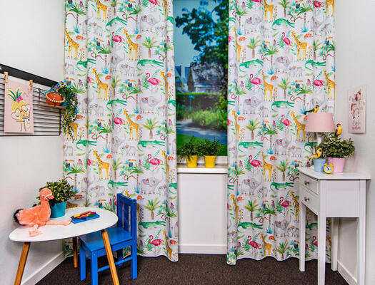 Kijk voor accenten die passen bij het thema Jungle en Safari ook eens naar de mogelijkheden met meubels en accessoires voor de inrichting van de kinderkamer. Laat voor een aangename verduistering van de kamer de stof voeren: een verschil van dag en nacht.