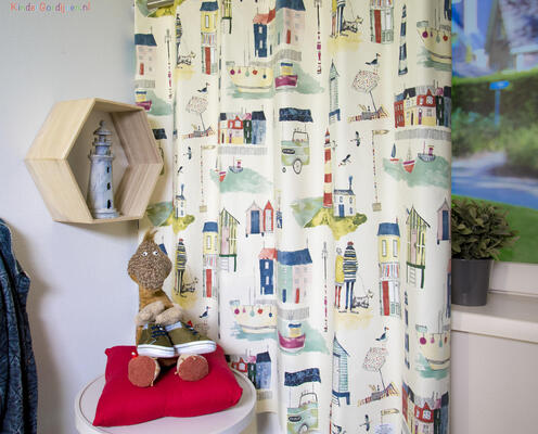 Het thema Maritiem is rijk aan mogelijkheden voor passende accenten, meubels en accessoires voor de inrichting van de kinderkamer. Laat voor een aangename verduistering van de kamer de stof voeren: een verschil van dag en nacht.
