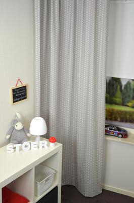 Kijk voor accenten die passen bij het gordijnen met sterren ook eens naar de mogelijkheden met meubels en accessoires voor de inrichting van de kinderkamer. Laat voor een aangename verduistering van de kamer de stof voeren: een verschil van dag en nacht.