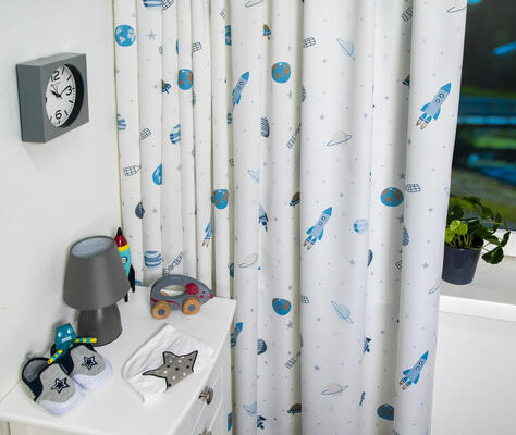 Kijk voor accenten die passen bij het gordijnen met sterren ook eens naar de mogelijkheden met meubels en accessoires voor de inrichting van de kinderkamer. Laat voor een aangename verduistering van de kamer de stof voeren: een verschil van dag en nacht.