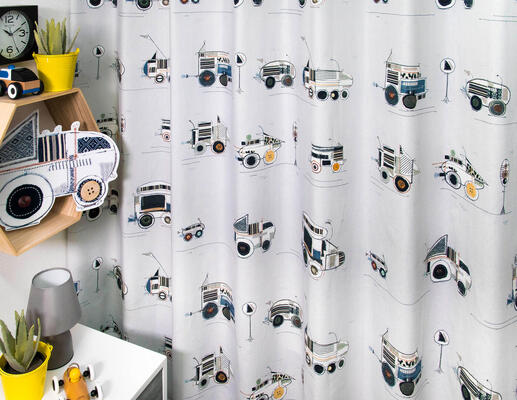 Kijk voor accenten die passen bij het thema Transport ook eens naar de mogelijkheden met meubels en accessoires voor de inrichting van de kinderkamer. Laat voor een aangename verduistering van de kamer de stof voeren: een verschil van dag en nacht.