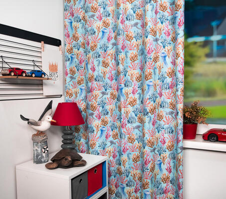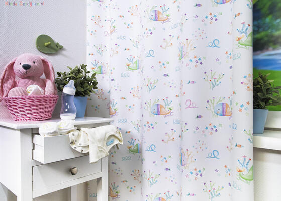 Speciaal zijn de talrijke kindergordijnen met dieren van de zee. Gordijnen met inktvissen, schildpadden of met prachtige pinguïns, walvissen, duikende dolfijnen en natuurlijk vissen groot en klein. Kijk eens naar de verschillende vismotieven, naar gordijnen met golvend koraal of kleurige zeesterren. Om schelpen te zien hoef je niet eens meer naar het strand: in je kamer hangen ze voor je raam. Veel gordijnen met zeedieren hebben een blauwe of witte achtergrond. Voor de babykamer zijn er gordijnen in zachte tinten, bijvoorbeeld met babywalvisjes. De gordijnen met lieflijke zeemeerminnen zijn een extra kijkje waard.