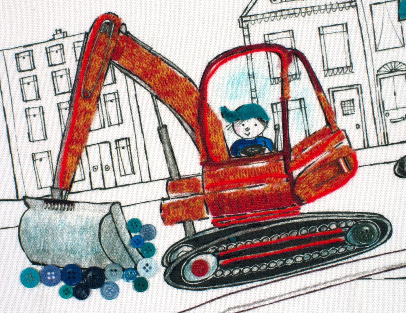 Vrachtwagens, brandweerauto's, kraanwagens... Tover de kinderkamer om tot een stoere kamer met deze gordijnen naar ontwerp van Hanneke de Jager. De print is helemaal met de hand getekend.