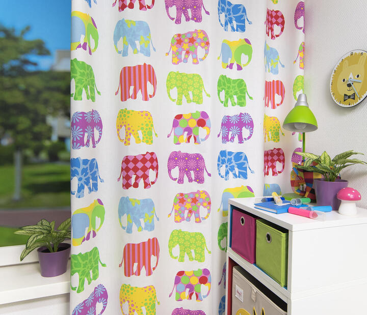 Dit kleurrijke gordijn is gemaakt van 100% katoen. Je kan hem helemaal zelf samenstellen hoe je het gordijn graag wilt hebben.