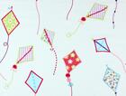Het gordijn Up and Away brengt een luchtig en vrolijk tafereel in de kamer met zijn geborduurde vliegers die over de stof lijken te zweven. De ondergrond is een zachte, lichte stof met een fijne, duidelijk zichtbare weefstructuur die het gordijn een natuurlijke uitstraling geeft. Op deze rustige basis zijn kleurrijke vliegers geborduurd, elk met een eigen vorm en patroon. Sommige zijn gevuld met kleine bloemenprints, andere met ruitjes of golvende lijnen, wat het geheel een speels en afwisselend karakter geeft.