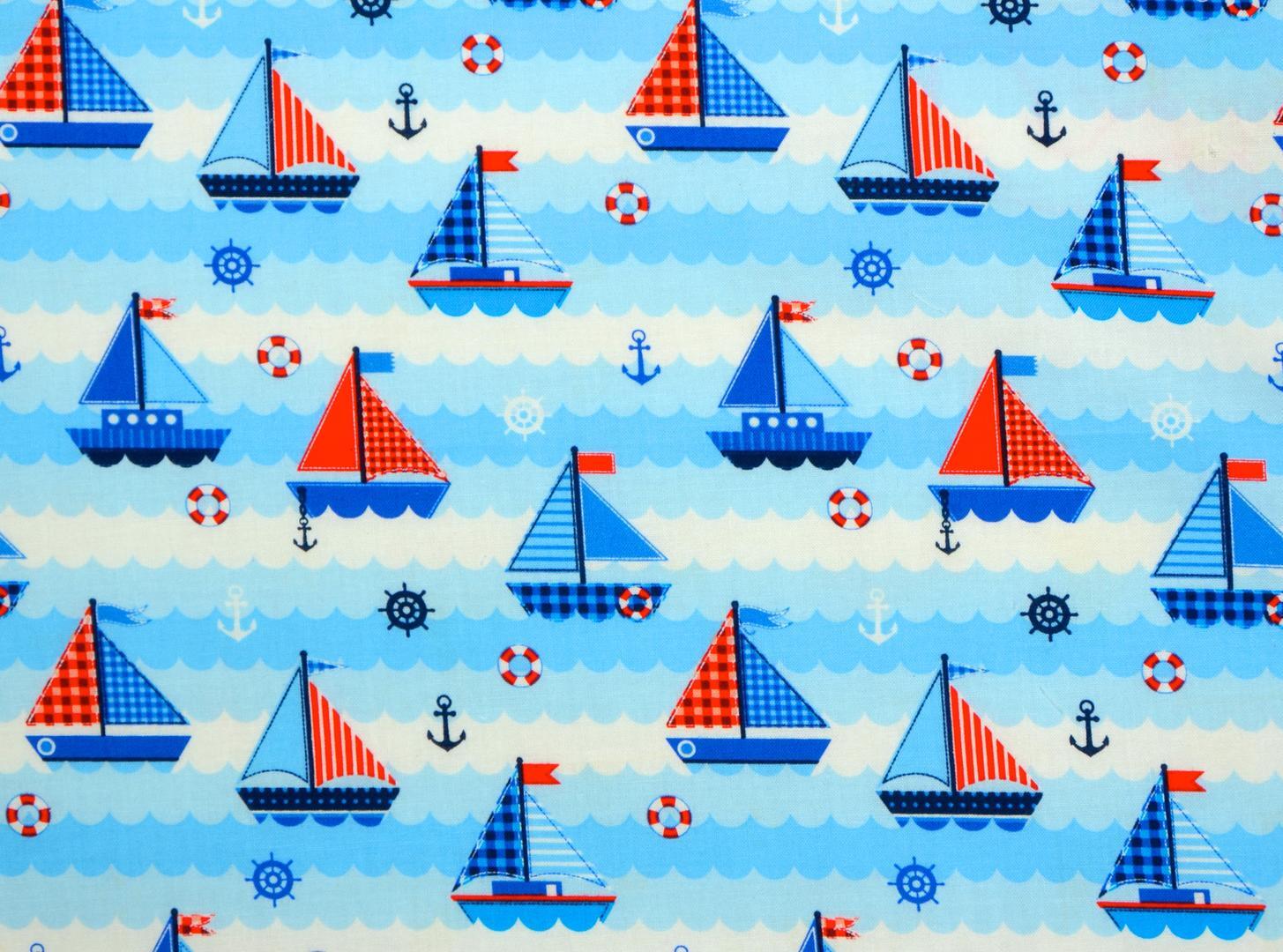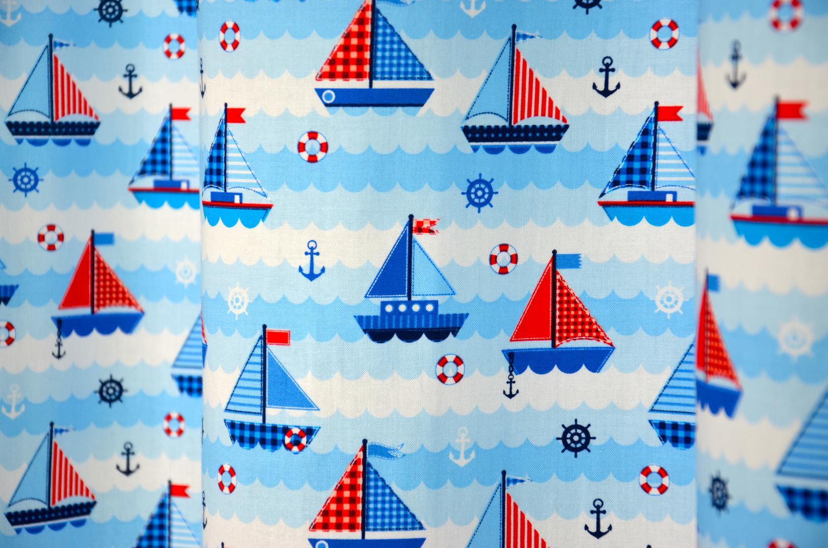Het Vela Baby- en Kindergordijn is gemaakt van een fijn geweven, hoogwaardige katoenen stof die comfortabel aanvoelt en stevig aan elkaar is gezet voor dagelijks gebruik. De print is haarscherp en helder van kleur, waardoor elk detail tot leven komt. Het dessin bestaat uit vrolijke zeilbootjes in rood, wit en blauw, varend op lichtblauwe golven die speels over de stof lopen. Tussen de bootjes zijn kleine ankers, reddingsboeien en scheepssturen te zien, die het geheel een maritiem karakter geven. De afwisseling van ruitjespatronen en effen zeilen zorgt voor een levendige uitstraling, zonder dat het druk oogt. De kleurencombinatie van fris blauw met warme rode accenten maakt dit gordijn geschikt voor zowel jongens- als meisjeskamers. Het patroon straalt rust uit, terwijl het tegelijkertijd een speels en avontuurlijk gevoel toevoegt aan de kinderkamer. Dankzij het tijdloze ontwerp blijft deze stof passend voor alle kinderleeftijden – van babykamer tot tienerkamer. Wij hebben deze stof ruim op voorraad, zodat we snel kunnen leveren. Wil je het materiaal eerst in handen hebben voordat je een op maat gemaakt gordijn bestelt? Bestel dan een knipstaal om de textuur en kleurtinten zelf te beoordelen. In de meeste gevallen wordt het staaltje dezelfde dag nog verzonden. Voor extra isolatie en verduistering kun je tijdens het bestelproces de optie “Voering” selecteren.