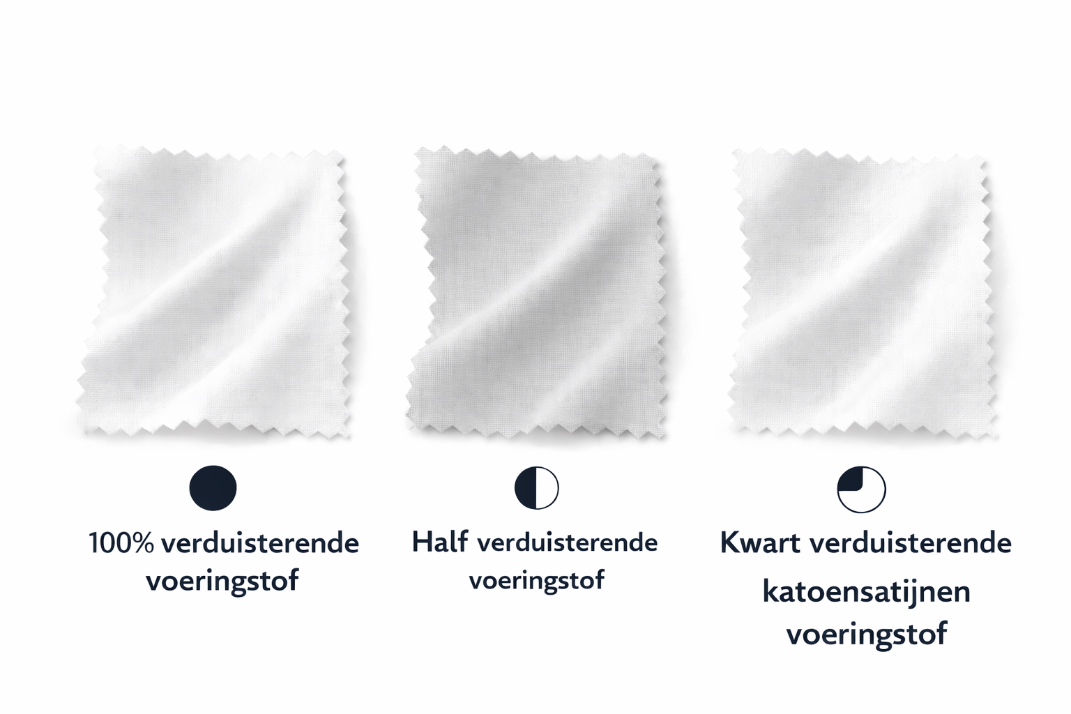 โ Kwart verduisterend (katoensatijn) – lichte filtering met een zacht, egaal licht en een gladde, soepele uitstraling