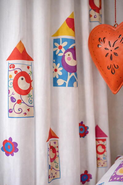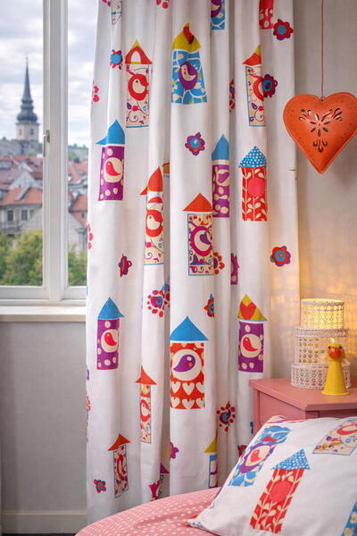 š Kindergordijn “Huisjes & Vogeltjes” – vrolijk, tijdloos en voor ieder kind