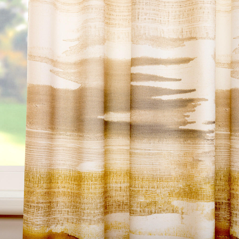 Soepel vallend kindergordijn met daarop een kleurrijk geprint horizon dessin aan de voorzijde van de stof. De print is waterbesparend. De stof werkt isolerend en geluidswerend. De voorkant van de stof heeft een mooie natuurlijke look en de achterkant heeft een zachte fleece optiek. Deze stof is Oeko-Tex gecertificeerd.