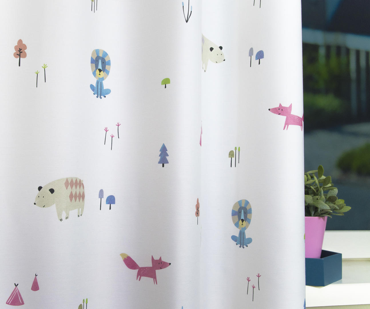 Uniek kindergordijn in zachte pastelkleuren, luchtig & lieflijk! Pastel wordt veel gebruikt voor (jonge) kinderkamers omdat het zacht en vriendelijk overkomt. Wanneer je ‘de pastel’ méér power wilt geven, kan je een tint vanuit het gordijn als muurverf gebruiken. Daar creëer je een fraaie balans mee. De stof is dicht geweven, valt soepel en is door zijn samenstelling kleurecht. De tekeningetjes van het patroon zijn +/- 8 cm groot en gedrukt op de warm-witte ondergrond. Voor extra verduistering optie voeren even aanvinken.