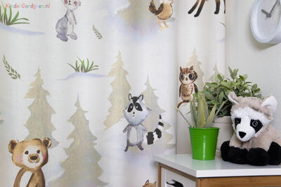 Kindergordijn Woodfriends – een vrolijk bos vol speelse dieren