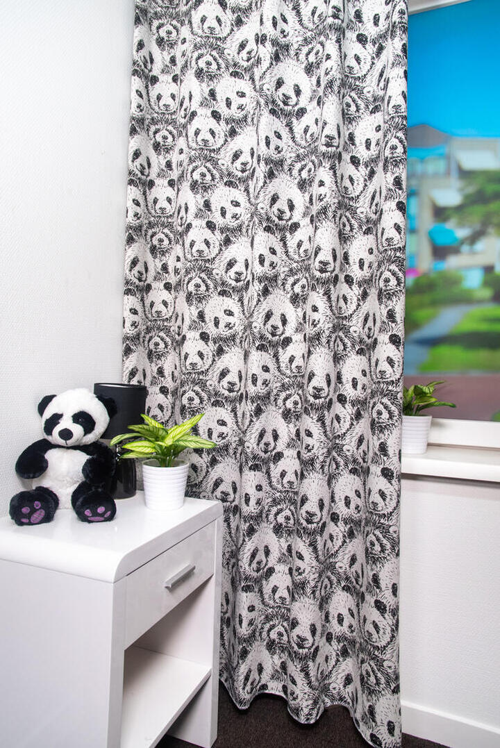 Een prachtig panda gordijn voor je raam! Als jij je eigen gordijnen kiest wordt het helemaal jouw kamer. Deze gordijnstof met de naam Yuan is gemaakt van de beste materialen waardoor het gordijn mooi in de plooi valt. Het aantal te gebruiken banen gordijnstof van 140cm breed worden door ons vakkundig aan elkaar geconfectioneerd zodat het patroon van 32cm mooi doorloopt. Laat voor een aangename verduistering van de kamer de gordijnen voeren: een verschil van dag en nacht.
